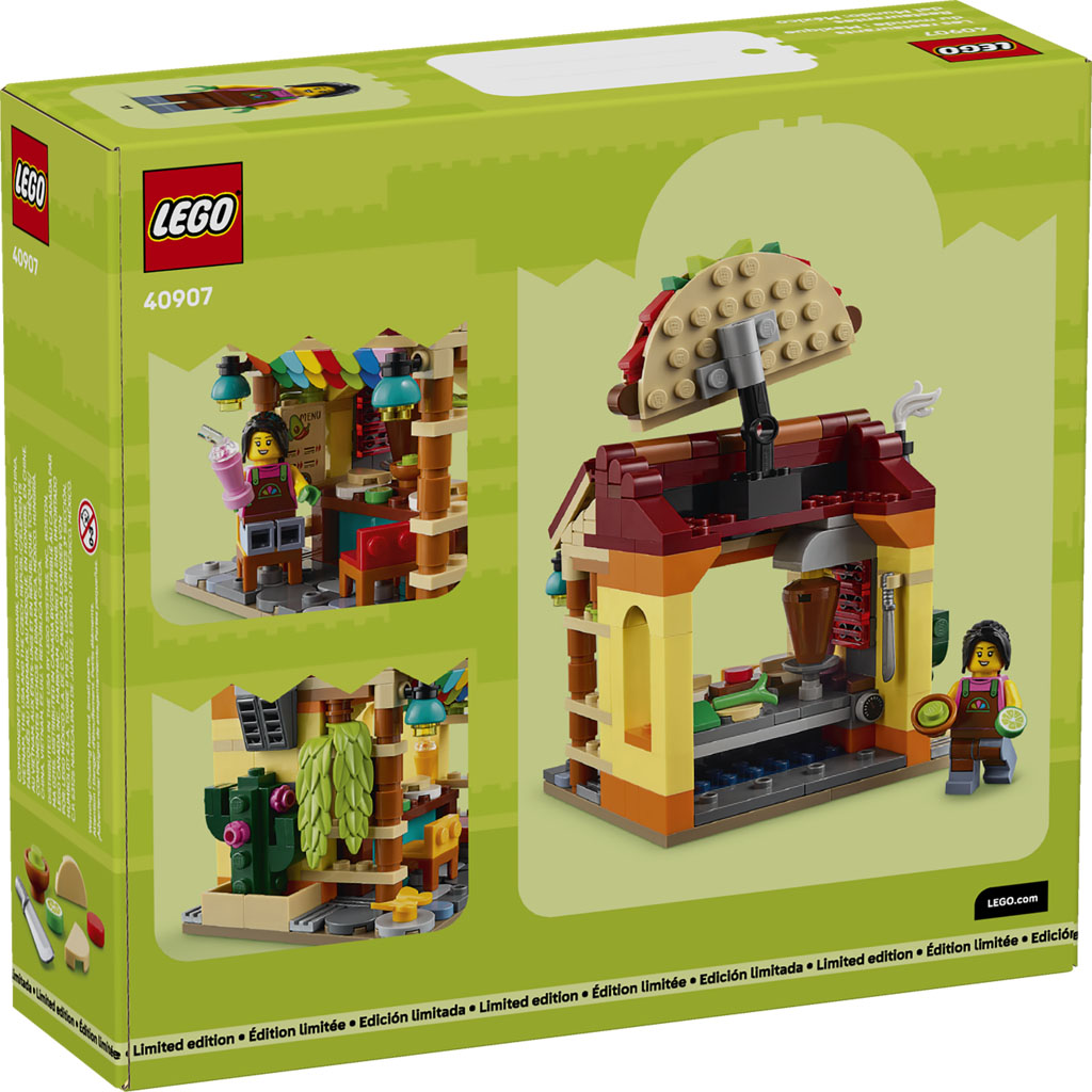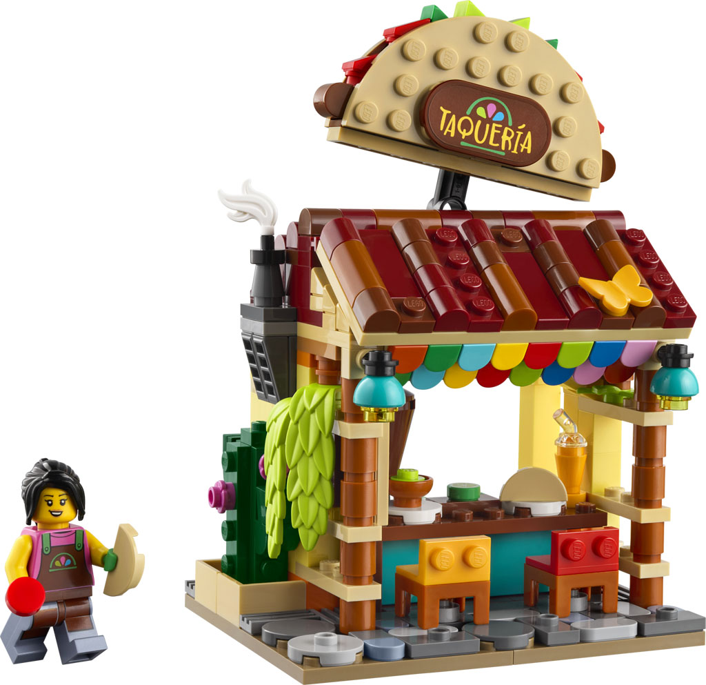A new LEGO gift with purchase set has been revealed with the Restaurants of the World: Mexico (40907). The set continues the line of different restaurants from around the world following Japan from a few months ago. This set has 327 pieces and features a taco shop with a kitchen and a place for guests to sit. The set should be available starting on April 10 with purchases of $180 or more.